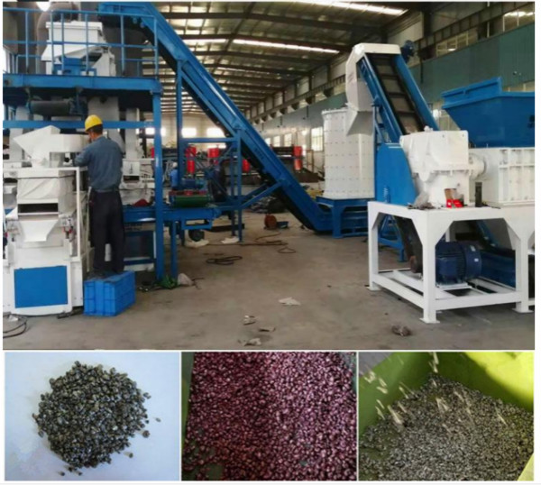 第一道程序;利用撕碎機(jī)對(duì)物料進(jìn)行破碎,它可以將投入其中的散熱器擠壓、撕裂、破碎至5CM寬度、長(zhǎng)度不均的小塊物料。撕碎機(jī)步驟很關(guān)鍵,撕碎后的物料可以均勻的投入后續(xù)的破碎設(shè)備中,為后續(xù)工作提供有利條件。